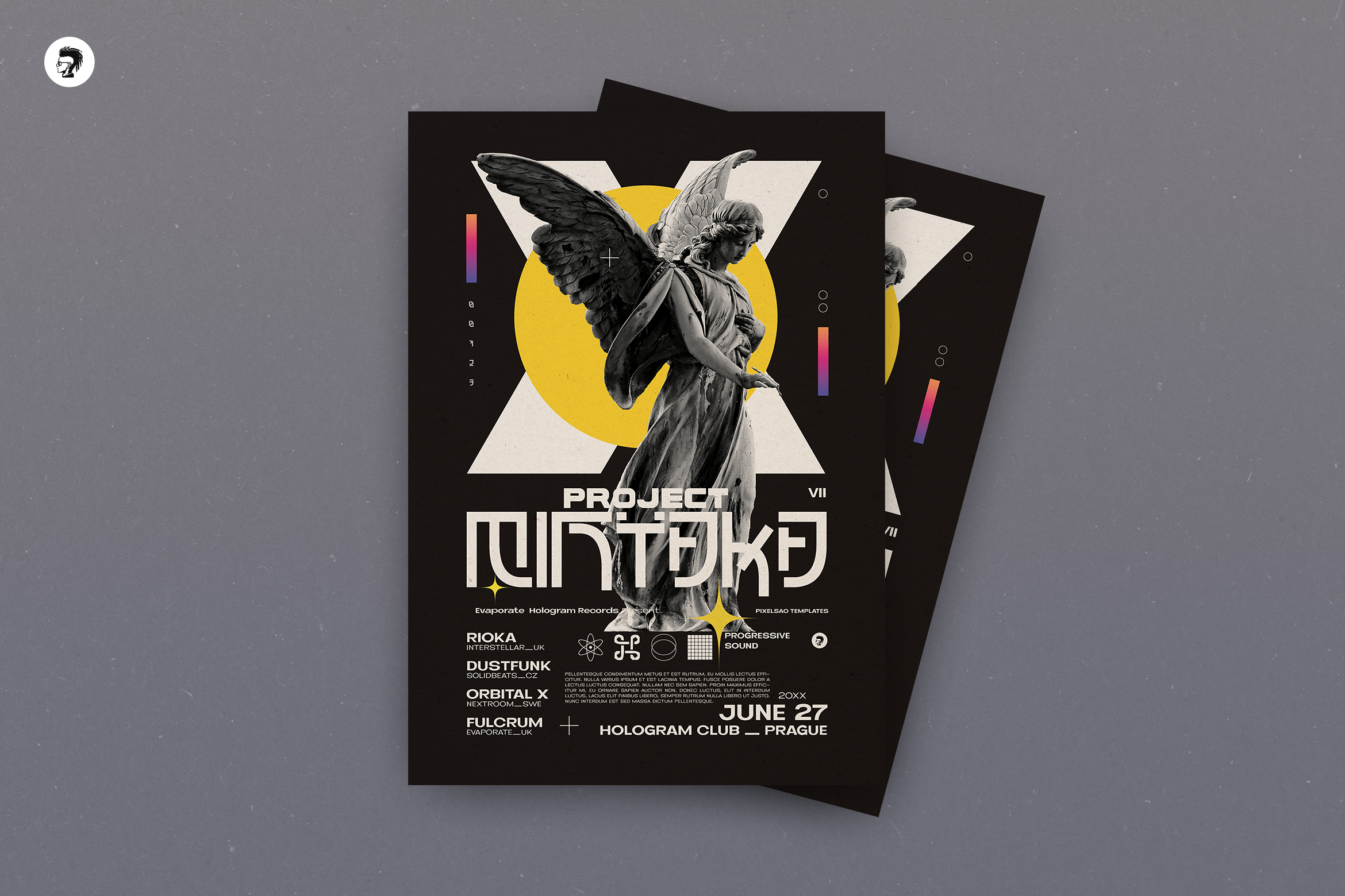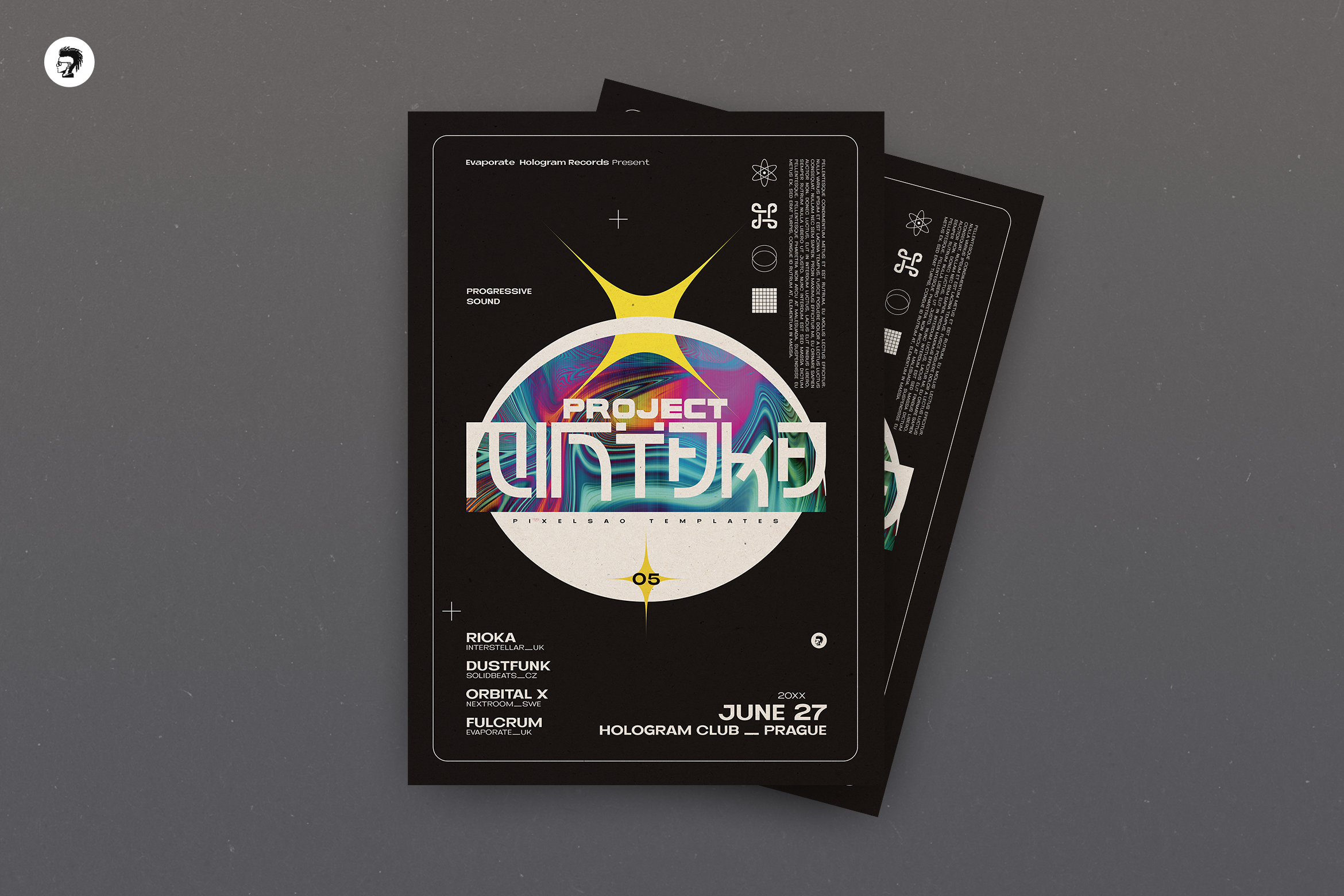The Mintaka poster/flyer templates bundle is a collection of modern, editable flyer and poster templates (Photoshop PSD + Affinity AF) built specifically for electronic music events.